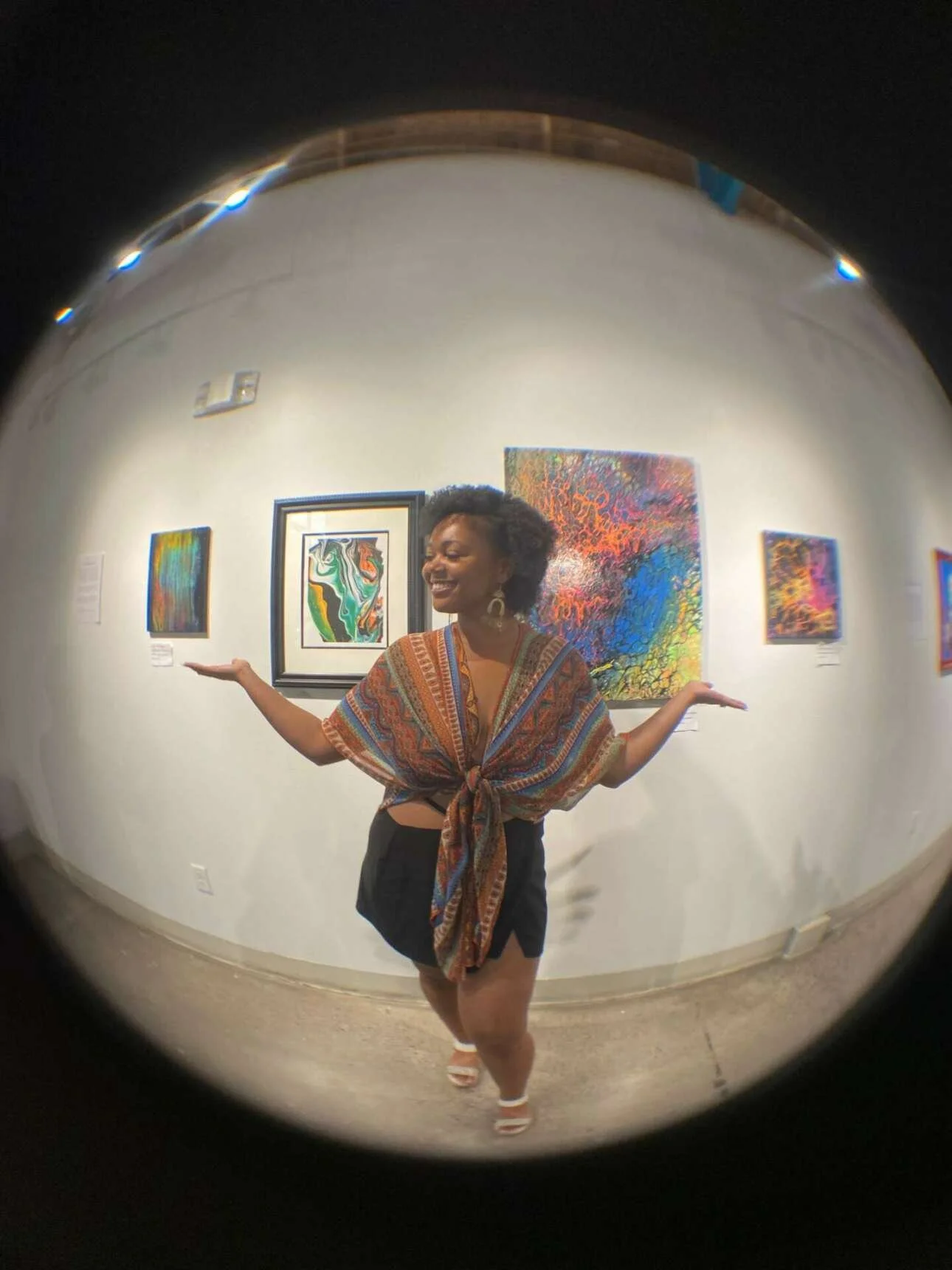 My work incorporates a range of mediums including photography, videography, acrylic pouring, immersive installations and storytelling-driven work, inviting reflection and transformation. With an extensive background and training in visual arts and organizing for collective liberation with a Bachelor’s degree in Economics, Sustainability, Peace & Justice studies, and Cameras, Exposure, and Photography, I blend modern tools with visual art to help my community, artists and wellness professionals heal, express and create meaningful experiences.